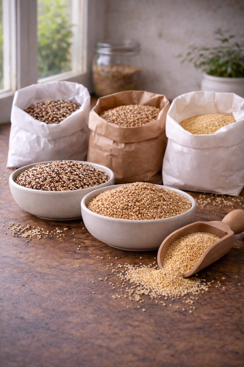 Getreidealternativen wie Quinoa, Buchweizen oder Amaranth gehören botanisch nicht zu den klassischen Getreiden, werden aber ähnlich verwendet. Sie sind von Natur aus glutenfrei und bringen Abwechslung in die Küche.