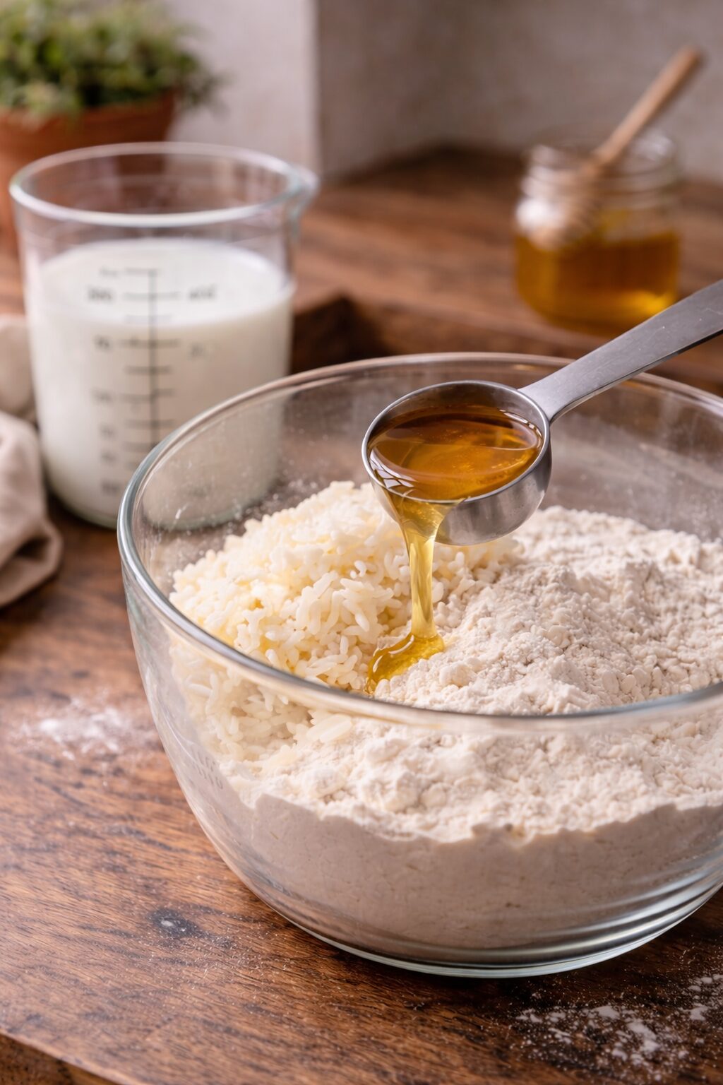 Gerade bei Rezepten mit mehreren Mehlarten oder Bindemitteln sorgen Messbecher und Messlöffel für Übersicht und sauberes Arbeiten.