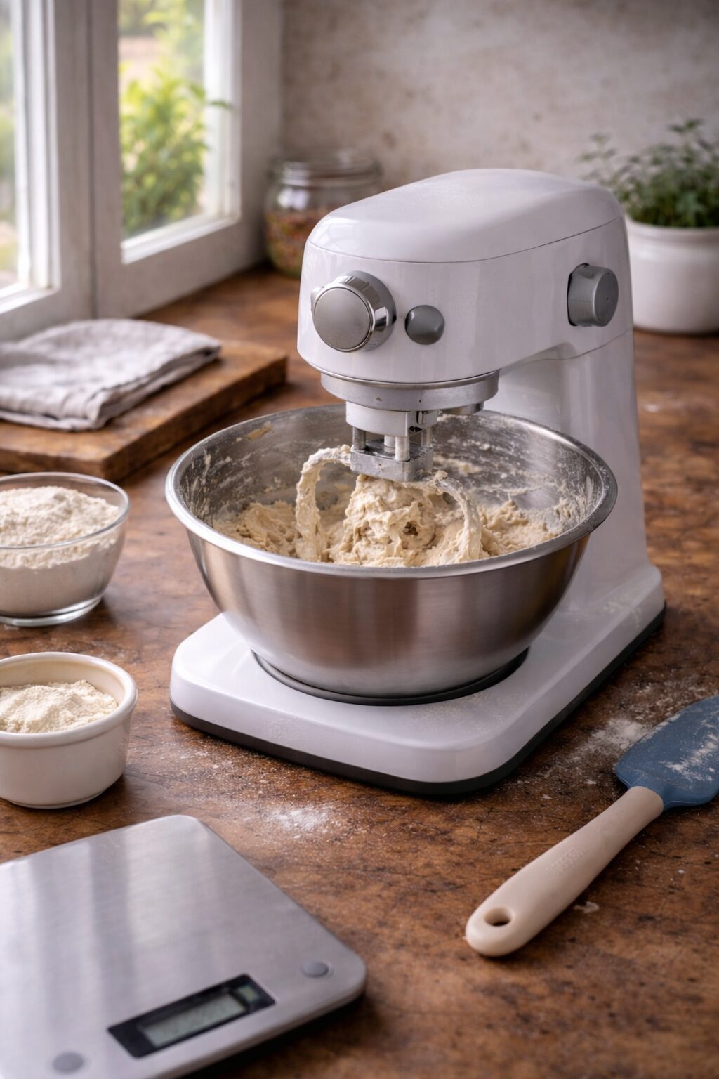 Beim glutenfreien Backen ist ein gleichmäßiges Vermengen der Zutaten entscheidend. Viele Teige sind weicher oder klebriger als klassische Weizenteige und profitieren von konstantem, kontrolliertem Mischen.