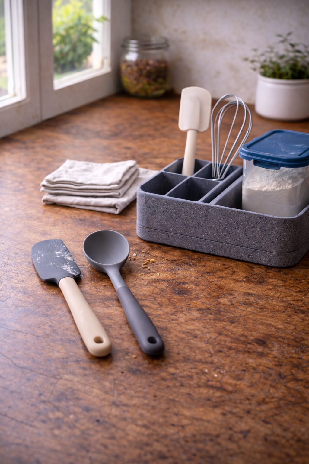 In diesem Bereich stehen Küchengeräte und Helfer im Fokus, die alltägliche Arbeitsschritte vereinfachen – vom Vorbereiten über das Portionieren bis hin zum Aufräumen. Ziel ist nicht Perfektion, sondern ein entspannter Umgang in der Küche.